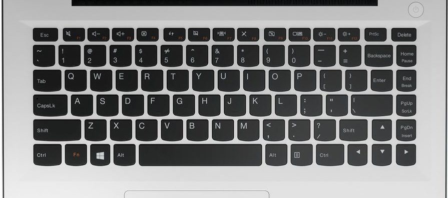 Omawiany laptop posiada podświetlaną klawiaturę typu wyspowego. Podświetlenie ma dwa poziomy intensywności. Klawiatura ma układ typowy dla klawiatur Lenovo. Klawisze są płaskie i gładkie. Mają krótki skok i wyraźne amortyzowanie. Klawiatura ugina się minimalnie podczas pisania, ale nie ma to negatywnego wpływu na komfort pracy.