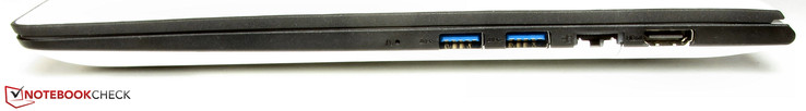 Lenovo U31-70 posiada trzy porty USB, dwa z których wspierają standard 3.0. Jest też m.in. gniazdo LAN. Złącza znajdują się w tylnych częściach ścianek bocznych.