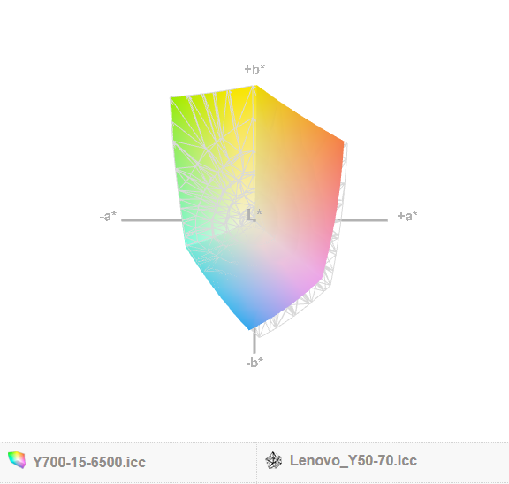 Niestety omawiany wyświetlacz ma też pewne wady; choć z natury omawiany panel LCD jest matowy, to jednak w Y700-15 ukryto go za błyszczącą szybą, co powoduje pogorszenie parametrów obrazu oraz uniemożliwia pracę na słońcu. Ponadto (podobnie jak w Lenovo Y50) widoczne są uloty światła (w testowanym egzemplarzu były one stosunkowo niewielkie). Nie najszersza jest paleta barw; jest znacząco węższa, niż przestrzeń kolorów sRGB.