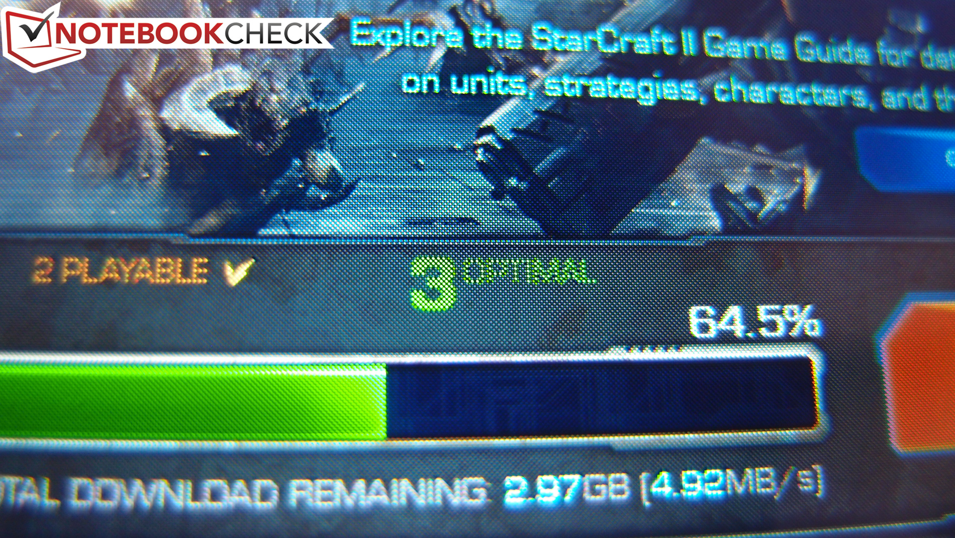 Średnia luminancja przy maksymalnej intensywności podświetlenia ekranu wyniosła 340,5 cd/m², podczas gdy według deklaracji producenta luminancja ma osiągać 350 cd/m². Na zasilaniu akumulatorowym stwierdzono maksymalnie 302,5 cd/m². Kontrast, 496:1, jest całkiem dobry, a wartość czerni to 0,749 cd/m². Równomierność podświetlenia została uzyskana w 87%, co również zasługuje na pochwałę.