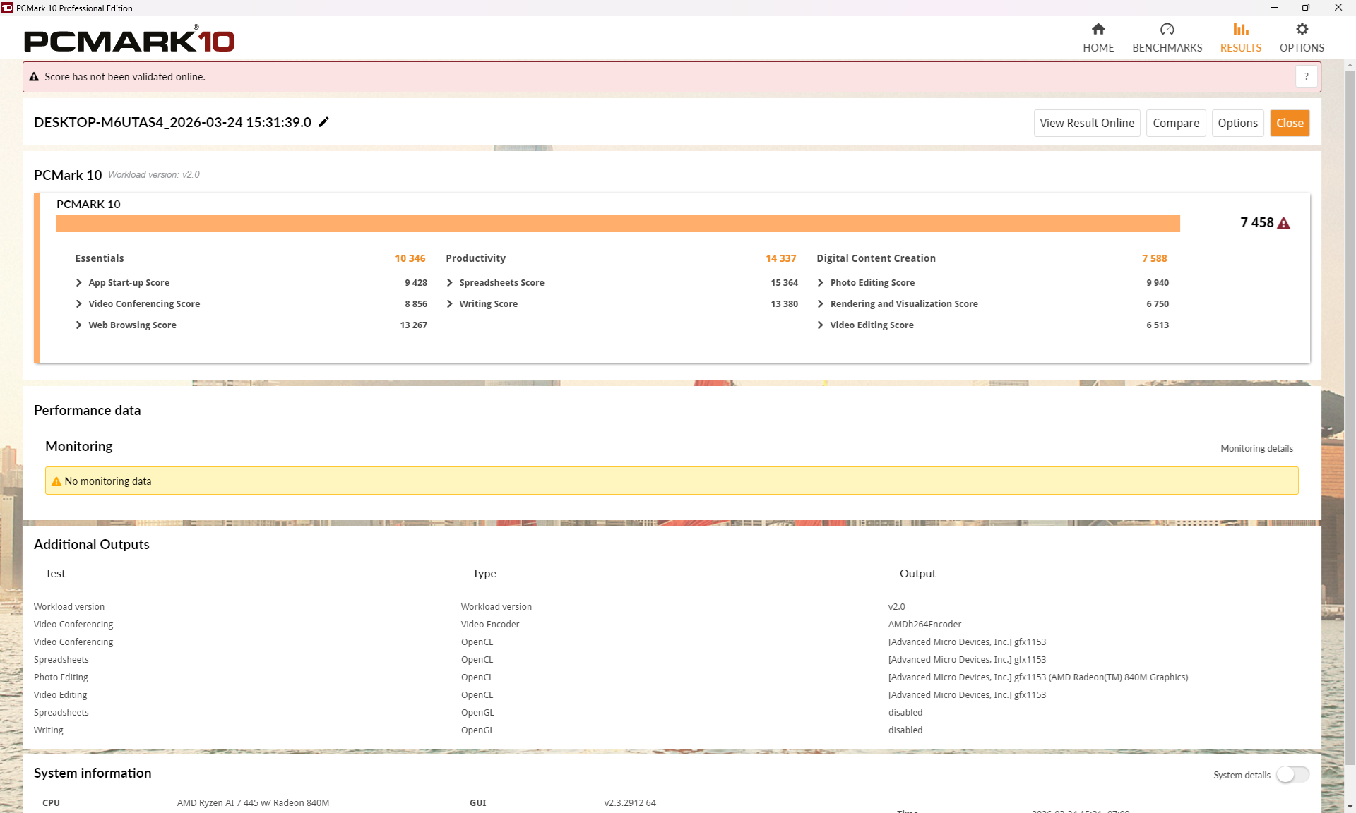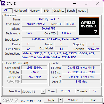 Procesor Ryzen AI 7 445 zapewnia jedynie mierny wzrost wydajności o około 15 procent w porównaniu do Core Ultra 7 256V w zeszłorocznym Yoga 7 2-w-1 16ILL10, aby być na równi z niedawno wydanym Core Ultra 5 325. W rzeczywistości ogólna wydajność jest nieco rozczarowująca, ponieważ jest prawie o 20 procent wolniejsza niż w zeszłym roku Ryzen AI 7 350 głównie ze względu na mniejszą liczbę rdzeni (6 vs. 8). Pomimo nazwy Ryzen AI 7, procesor bardziej przypomina średniej klasy procesor Ryzen 5.