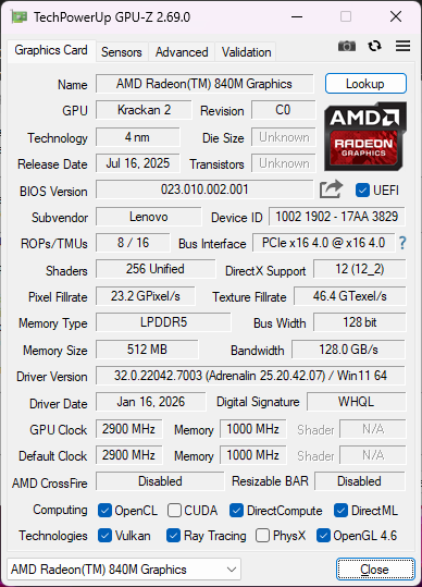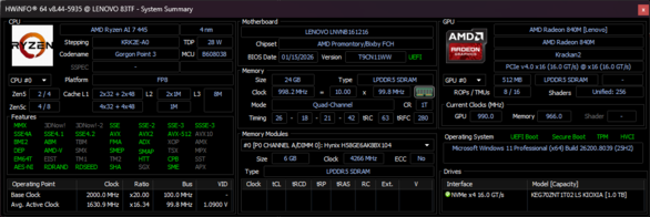 | Lenovo Yoga 7 2-in-1 16AGP11 AMD Ryzen AI 7 445 ⎘ AMD Radeon 840M ⎘ 24 GB Pamięć | Amazon: Cena katalogowa: 1250 USD | 1.8 kg | 15.85 mm | 16.00" 1920x1200 142 PPI OLED | |