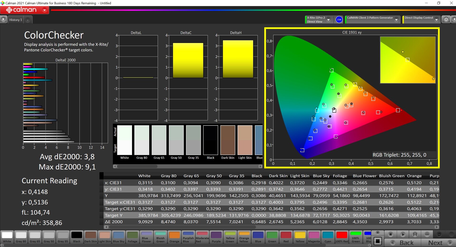 | Colorchecker dE 2000 max. * | 9.1 | 4.91 46% | 6.87 25% | 5.3 42% | 3.48 62% | 3.6 60% |