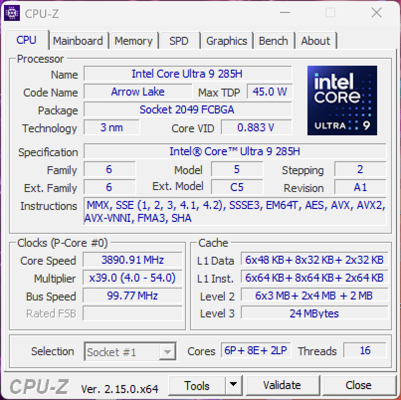 Procesor Core Ultra 9 285H może przez krótki czas zużywać 115 watów, a następnie stabilizuje się na poziomie 75 watów. Oznacza to, że wydajność procesora jest dobra, ale również nieco niższa niż w przypadku AMD Ryzen AI 9 HX 370który wymaga tylko 70/65 watów. Praca na baterii pokazuje również, że wysoki limit mocy nie ma większego sensu. Tutaj procesor może zużywać maksymalnie 95 watów, ale może utrzymać ten poziom przez dłuższy czas, zanim zużycie również spadnie do 75 watów. W rezultacie wynik w teście Cinebench 2024 jest nawet o 2% lepszy.