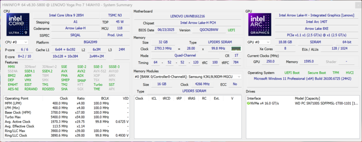Yoga Pro 14 G10 z procesorem Intel Core Ultra 9 285H to miecz obosieczny. Choć procesor oferuje dobrą wydajność, to obecny procesor Zen 5 oferuje taką samą wydajność przy niższym zużyciu energii. Wysoka wydajność GPU w testach syntetycznych nie znajduje również odzwierciedlenia w testach gier, ponieważ Intel i AMD są ostatecznie na równi w tej dziedzinie.