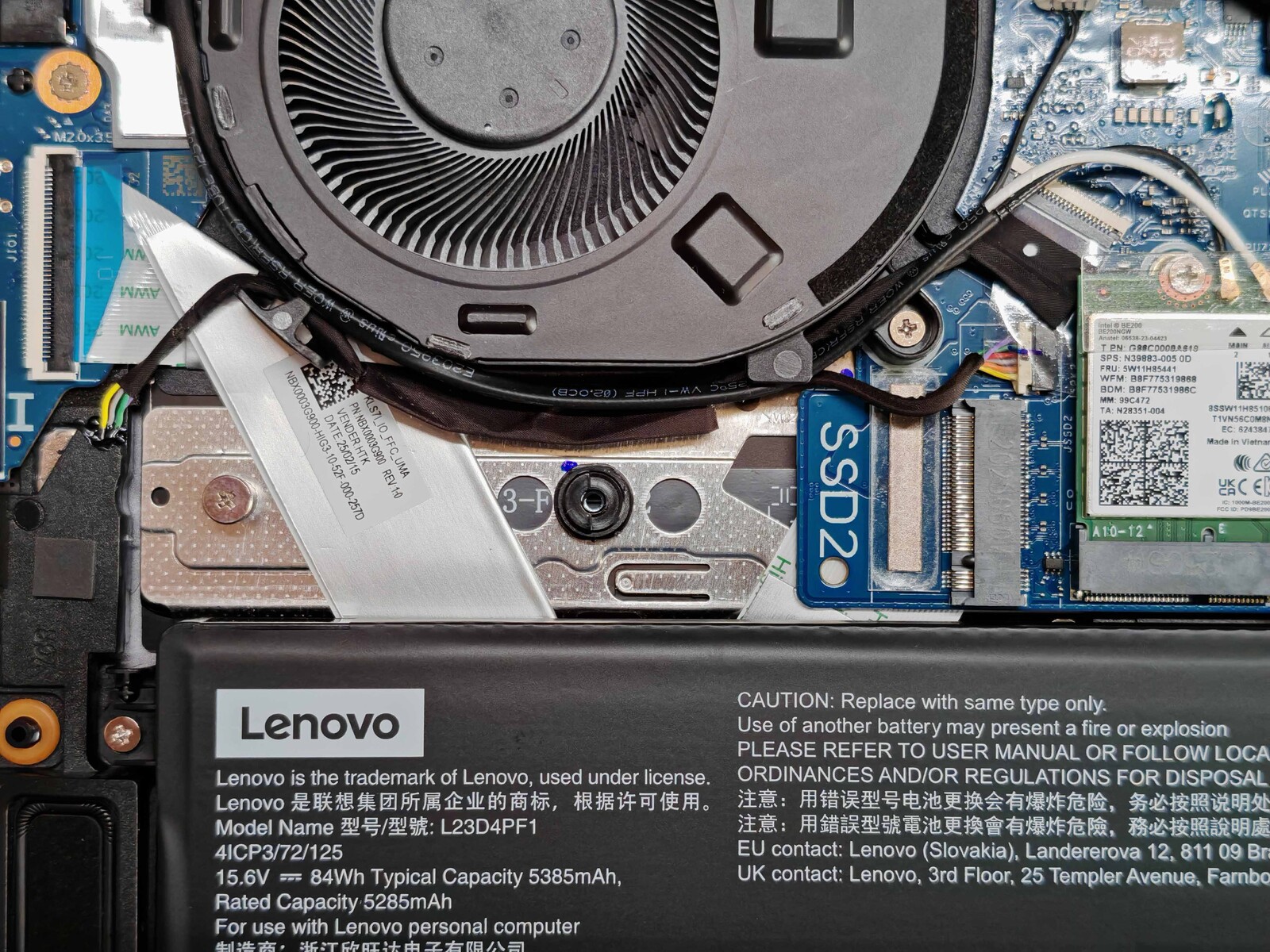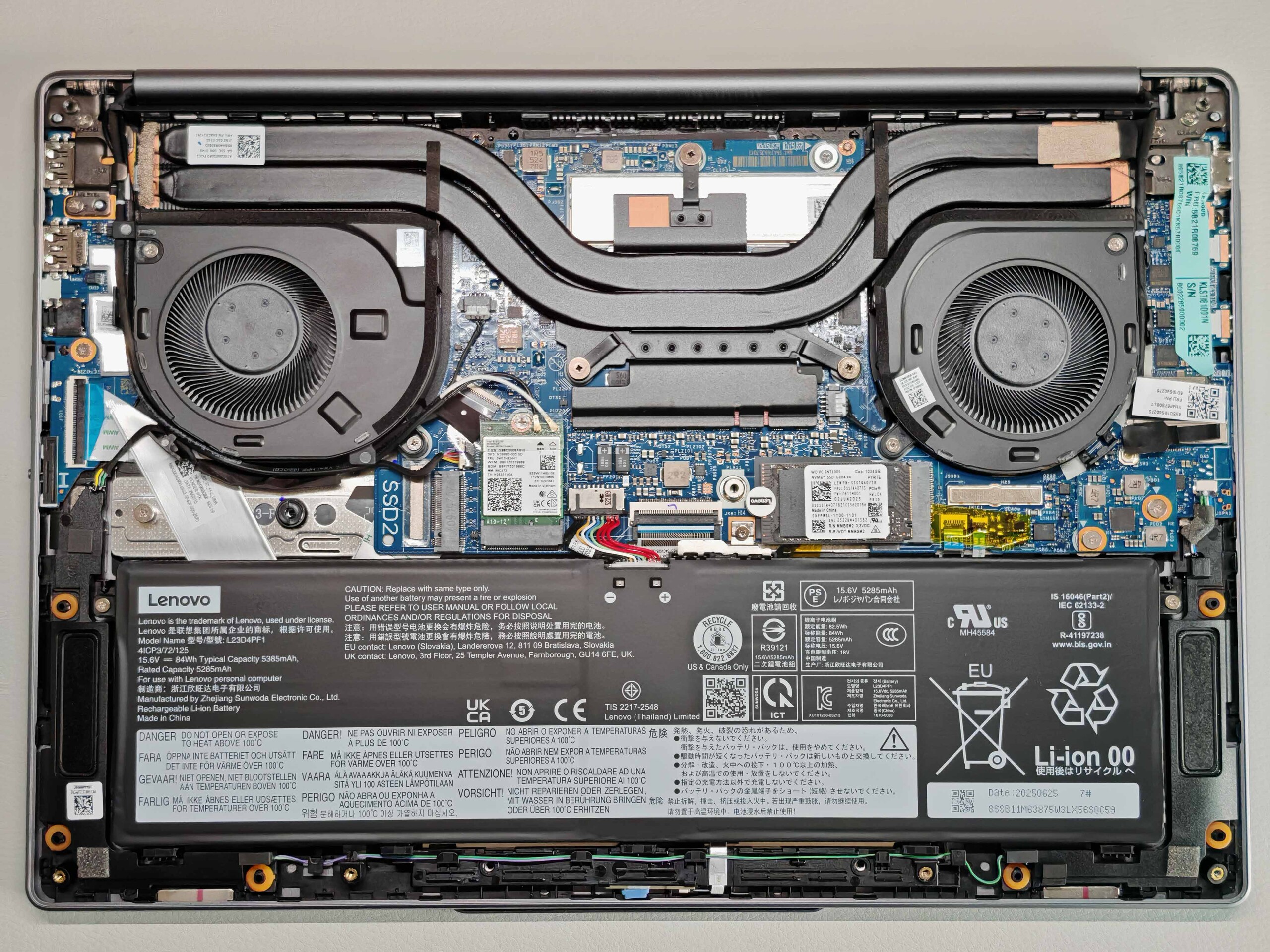Wysokie limity mocy również powodują dalsze problemy, ponieważ dostarczony 100-watowy zasilacz jest zbyt słaby przy pełnym obciążeniu, dlatego też konieczne jest podłączenie akumulatora. Ponadto chłodzenie jest bardzo głośne na poziomie 48 dB(A), a żywotność baterii jest słabsza. Dlaczego Lenovo dostarcza tylko model Intela z czytnikiem kart, jest dla nas tajemnicą.