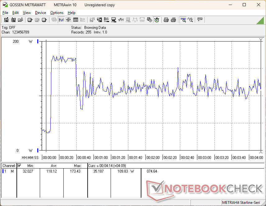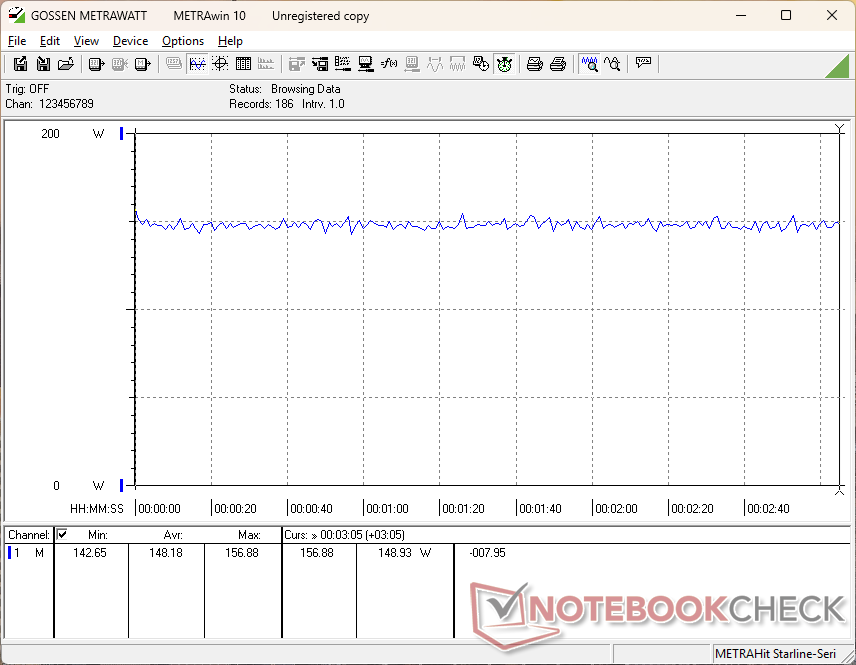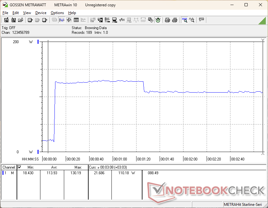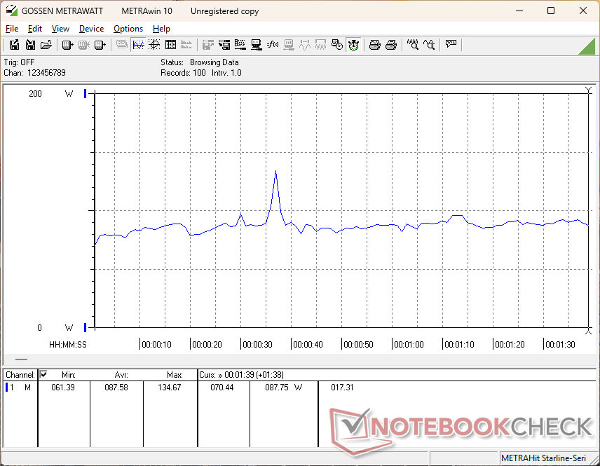 Zużycie energii może wynosić zaledwie 7 W w trybie iGPU z ekranem ustawionym na minimalną jasność lub ponad 22 W w trybie dGPU i maksymalnej jasności. Podczas grania system pobierałby jednak tylko kilka watów mniej niż znacznie szybsze opcje RTX 5060 lub 5070. Aktualizacja do konfiguracji RTX 5060, na przykład, pobierałaby zaledwie 6 procent więcej energii za 20 do 30 procent wyższą wydajność w grach.