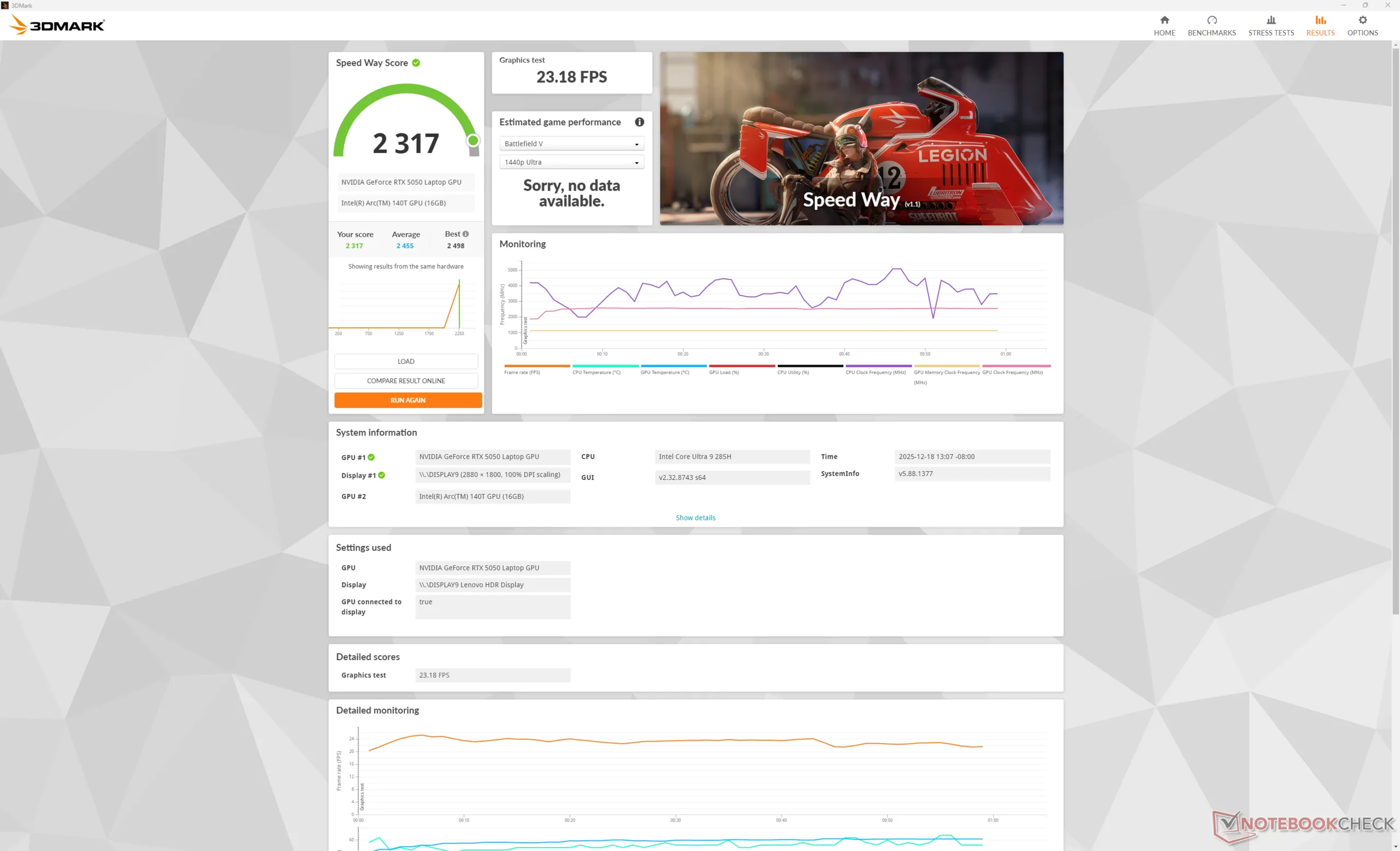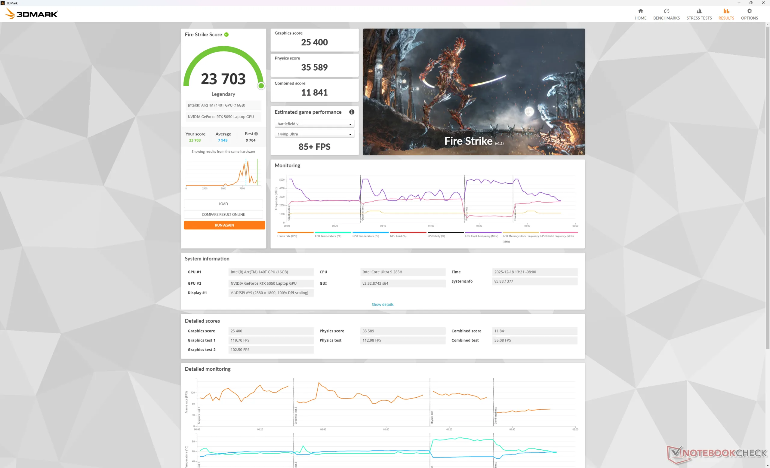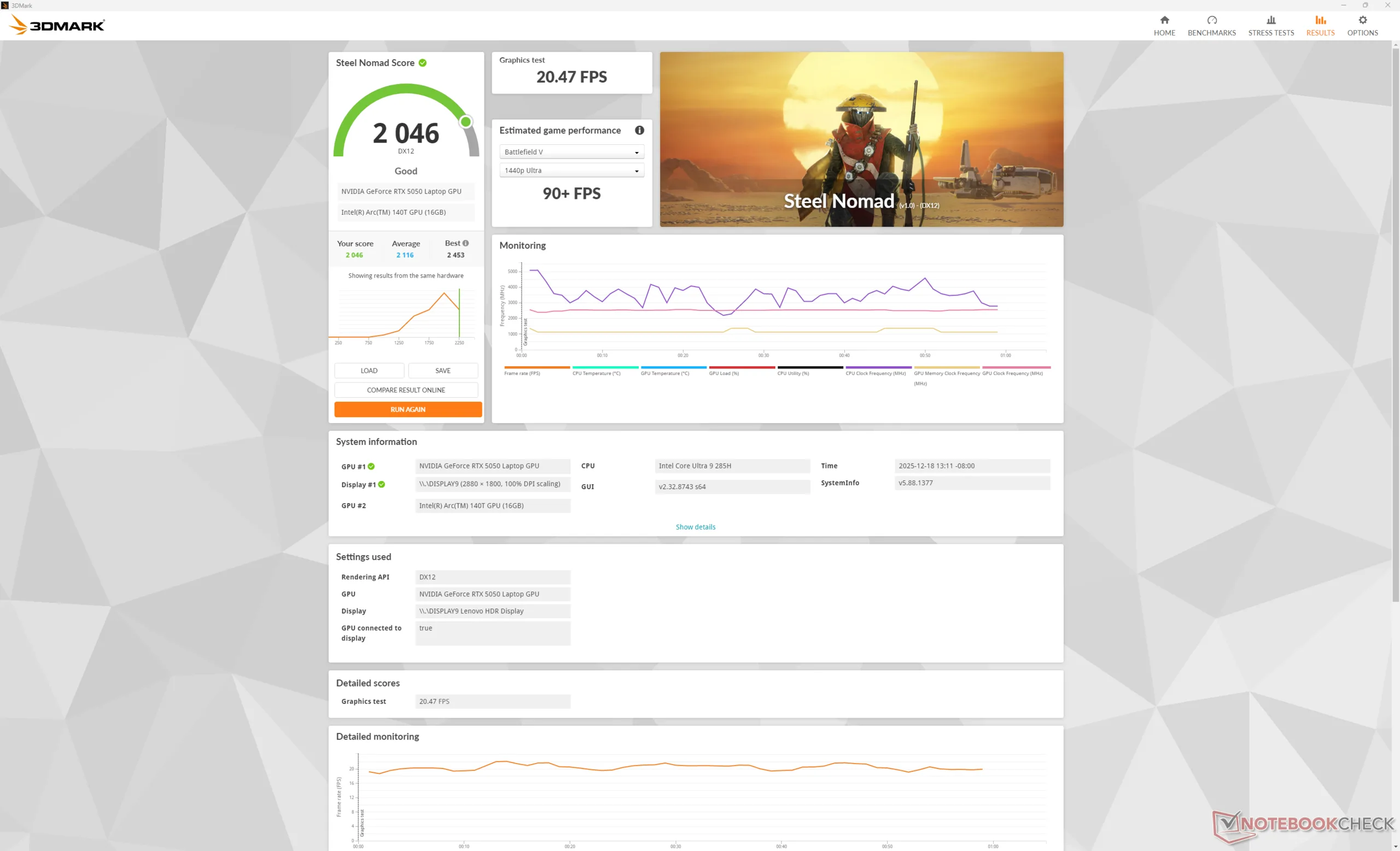 | Przeciętny Intel Core Ultra 9 285H, NVIDIA GeForce RTX 5050 Laptop (n=1) | |