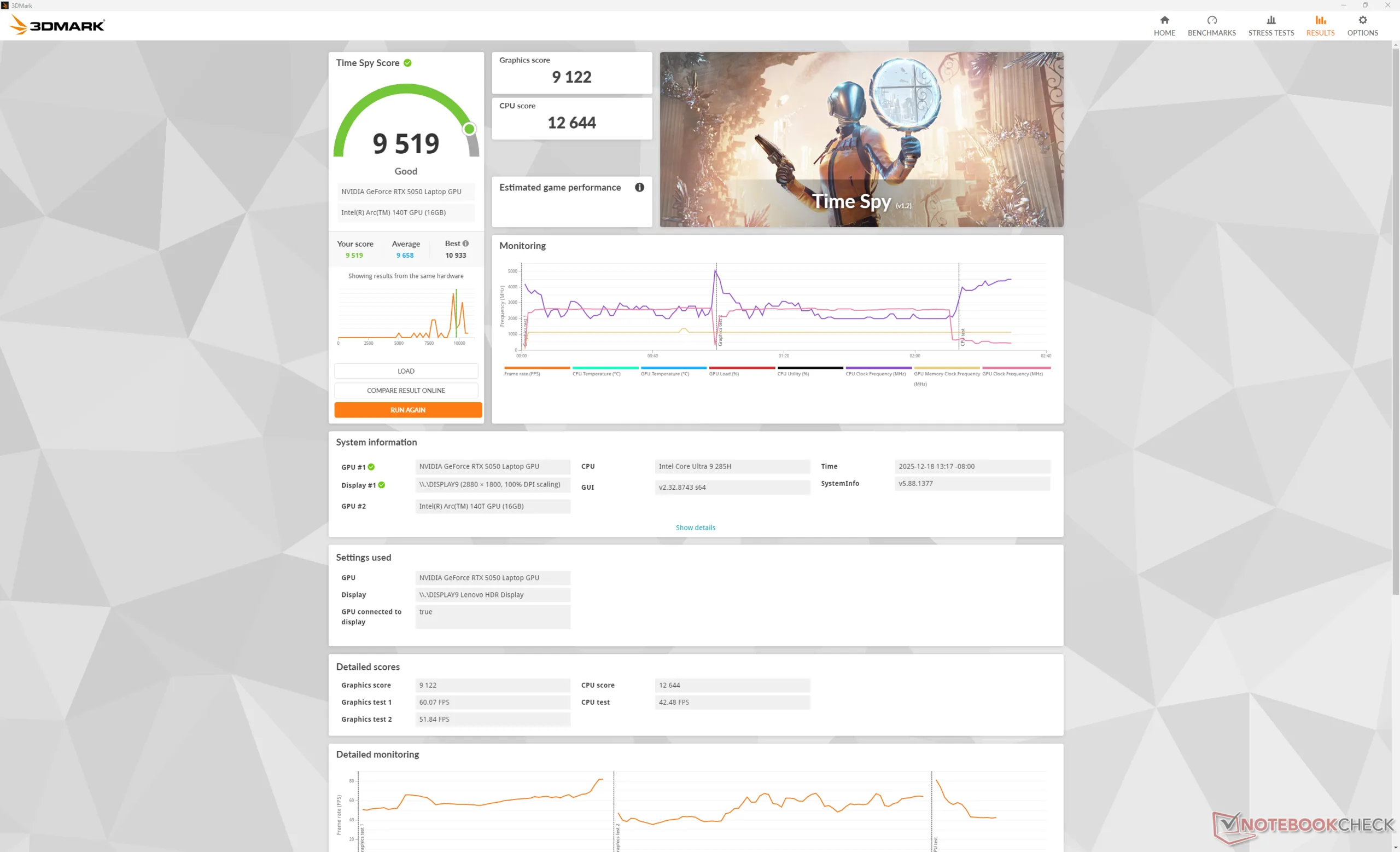 | Przeciętny Intel Core Ultra 9 285H, NVIDIA GeForce RTX 5050 Laptop | |