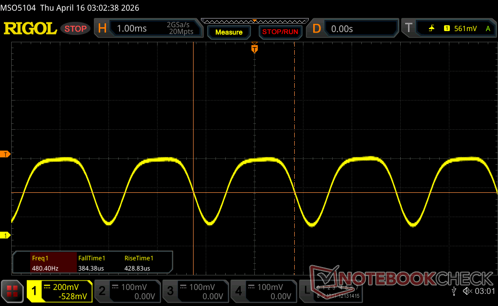 | Wykryto migotanie ekranu/wykryto PWM | 479.46 Hz Amplitude: 50 % | ≤ 100 % ustawienia jasności | |