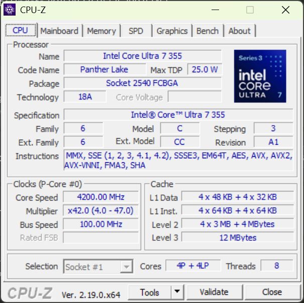 Jezioro Pantery Core Ultra 7 355 jest jak równy z równym z zeszłorocznym Lunar Lake Core Ultra 7 258V pod względem wydajności procesora. Aktualizacja do Core Ultra X7 ma zwiększyć wydajność wielowątkową nawet o 60 procent.