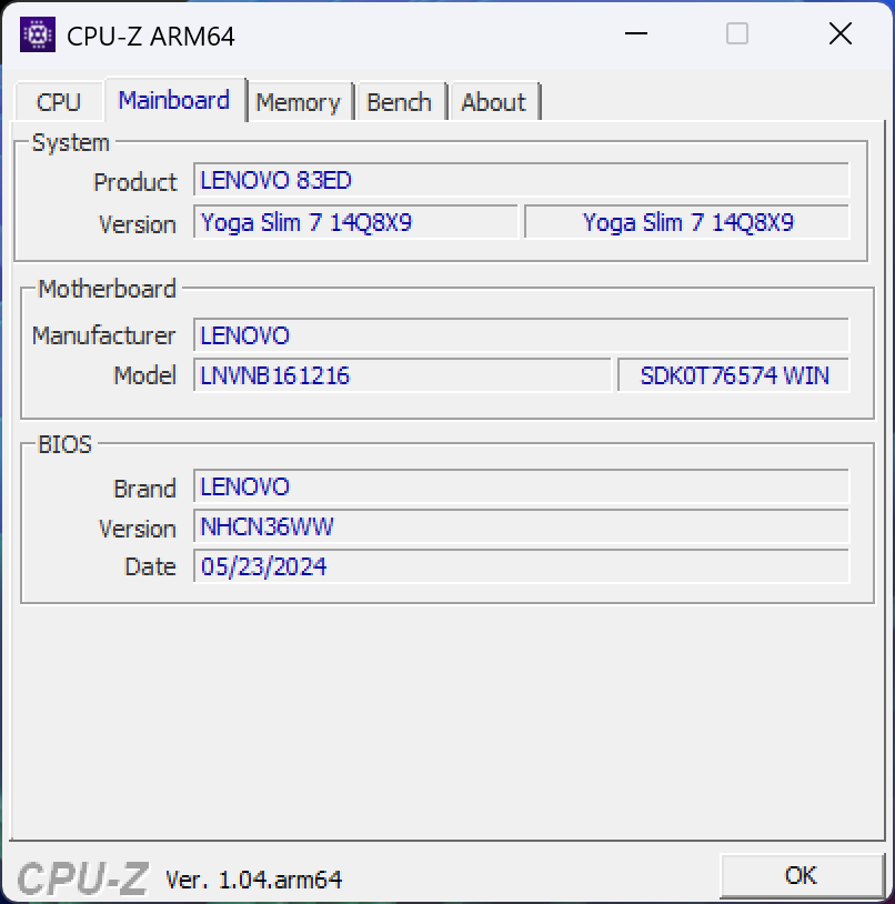 | 86.4 % | v8 | 08/2024 | Lenovo Yoga Slim 7X 14Q8X9 SD X Elite X1E-78-100, Adreno X1-85 3.8 TFLOPS | 1.3 kg | 15 mm | 14.50" | 2944x1840 | |