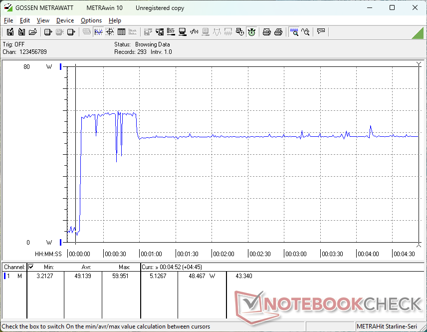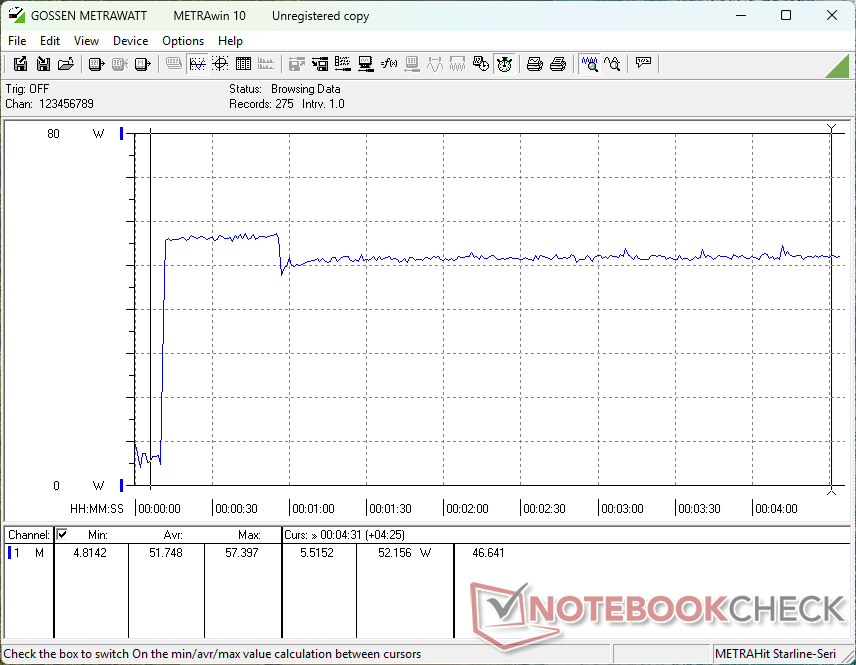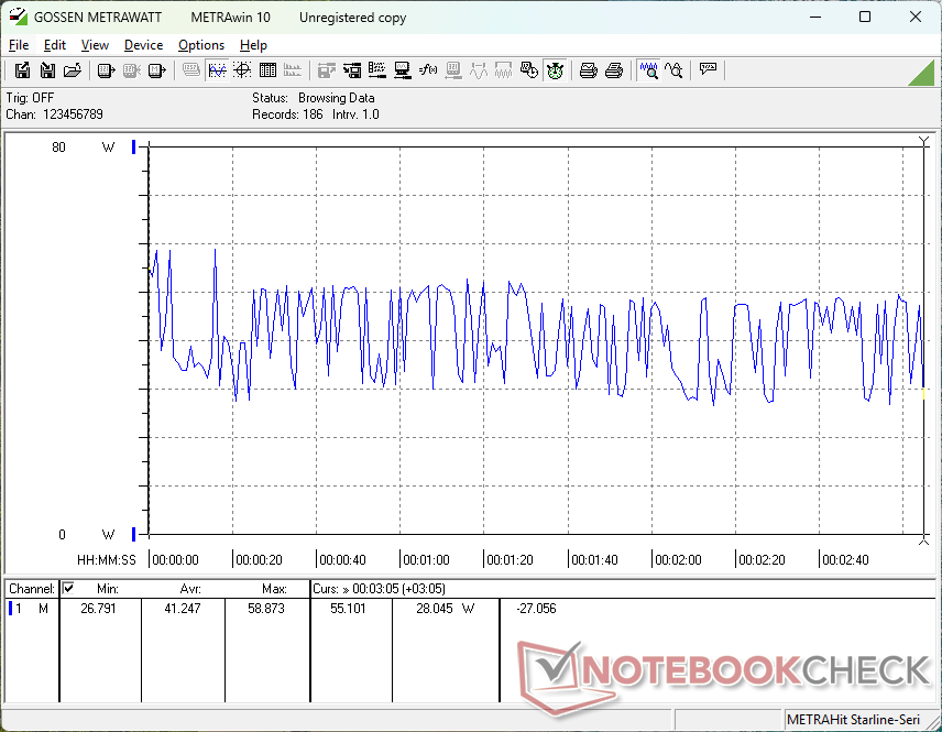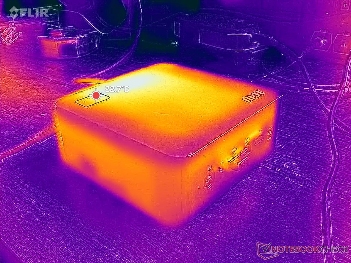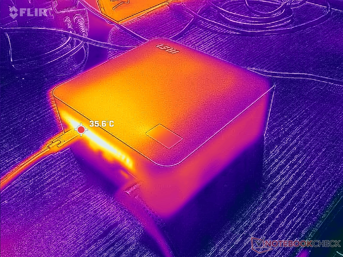 Całkowite zużycie energii jest zauważalnie niższe niż w przypadku mini PC z serii AMD H, takich jak GMK NucBox K12 nawet pomimo tego, że nasz zintegrowany układ Arc 140V jest mniej więcej porównywalny do konkurencyjnego zintegrowanego Radeona 780M podczas grania. Wydajność w przeliczeniu na wat generalnie faworyzuje MSI Cubi, aczkolwiek kosztem surowej wydajności procesora w porównaniu do wielu alternatyw AMD Zen 4 lub Zen 5.