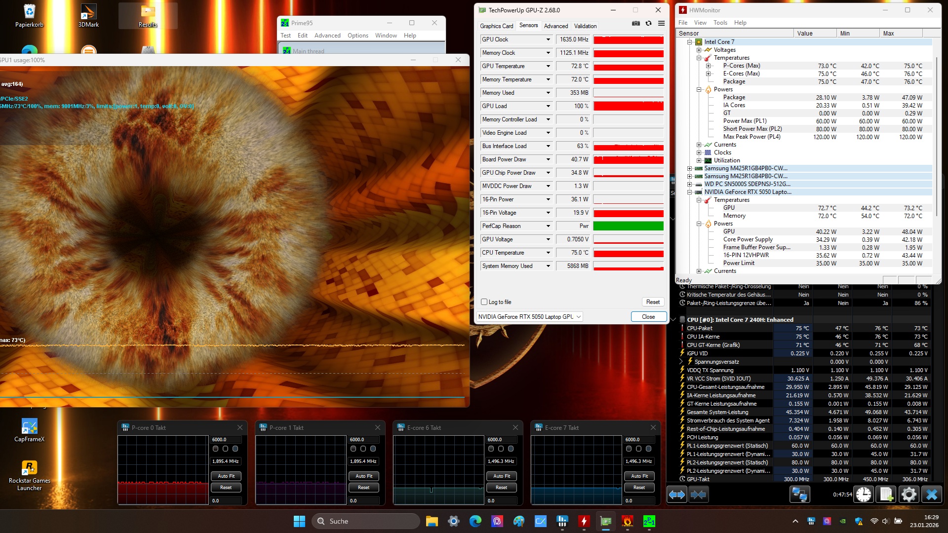 Podczas gdy zużycie energii w spoczynku nie odbiega od normy, 15-calowy laptop jest stosunkowo oszczędny pod obciążeniem w porównaniu do innych laptopów z RTX 5050.