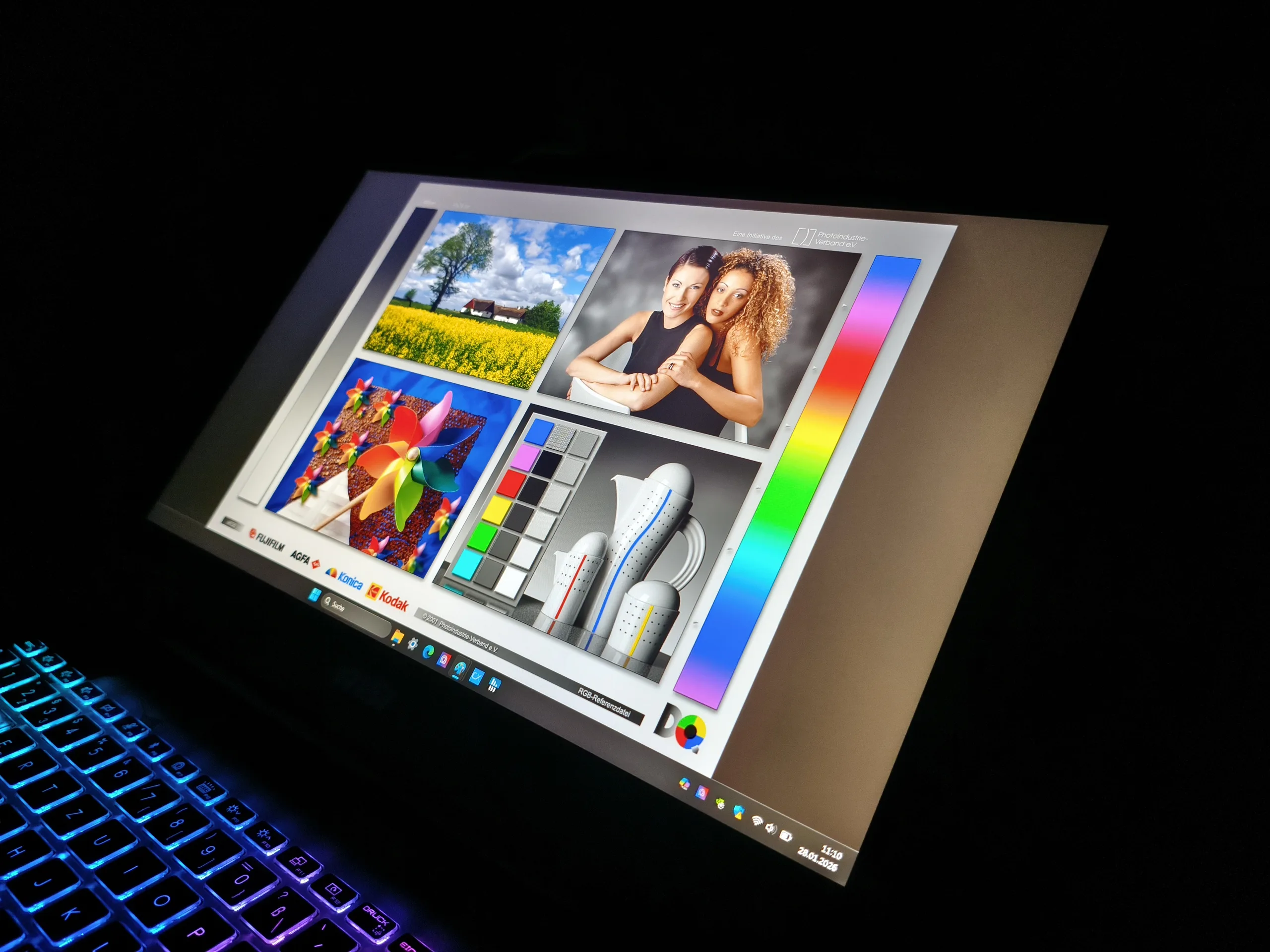 Jak wspomniałem na początku, jakość ekranu panelu Full HD (144 Hz) pozostawia wiele do życzenia. Chociaż kontrast jest całkiem przyzwoity (prawie 1700:1) dzięki niskiej wartości czerni wynoszącej 0,17 cd/m², jasność około 270 cd/m² nie jest imponująca. Ze względu na niewielką przestrzeń kolorów (tylko 65% sRGB), kupujący muszą również żyć z dość bladym wrażeniem obrazu. Lenovo LOQ 15 pokazuje, że w tym przedziale cenowym może być lepiej, podczas gdy inne aspekty, takie jak czas reakcji i kąty widzenia, są przeciętne.
