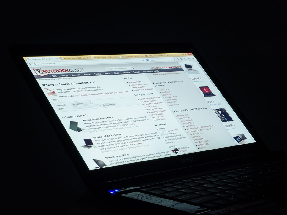 W recenzji MSI GE40 na stronie Notebookcheck.com można przeczytać narzekania autora na przeciętną matrycę AU Optronics (AUO303E) oraz pochwały dla innego wyświetlacza tej marki (AUO113D). Model MSI GE40, który trafił w moje ręce (dostępny w polskiej dystrybucji), był wyposażony w tę lepszą matrycę, czyli AUO113D. Ekran ma przekątną 14 cali, proporcje 16:9 i wyświetla obraz o maksymalnej rozdzielczości 1920 x 1080 pikseli. Korzystanie z ekranu jest bardzo komfortowe nawet w niesprzyjających warunkach oświetleniowych. Matowa matryca zapobiega odblaskom (denerwować może jedynie błyszcząca ramka).