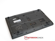 Na spodzie znajduje się duża pokrywa serwisowa. Pod nią mamy najważniejsze podzespoły, które można wymieniać. Są to dysk twardy, dwa moduły pamięci operacyjnej, karta łączności bezprzewodowej, procesor oraz karta grafiki. Odkryjemy tutaj też wolne gniazdo mSATA (oznaczone napisem "SSD"). Konstrukcja jest idealna z punktu widzenia kogoś, kto zamierza regularnie czyścić układ chłodzenia laptopa.