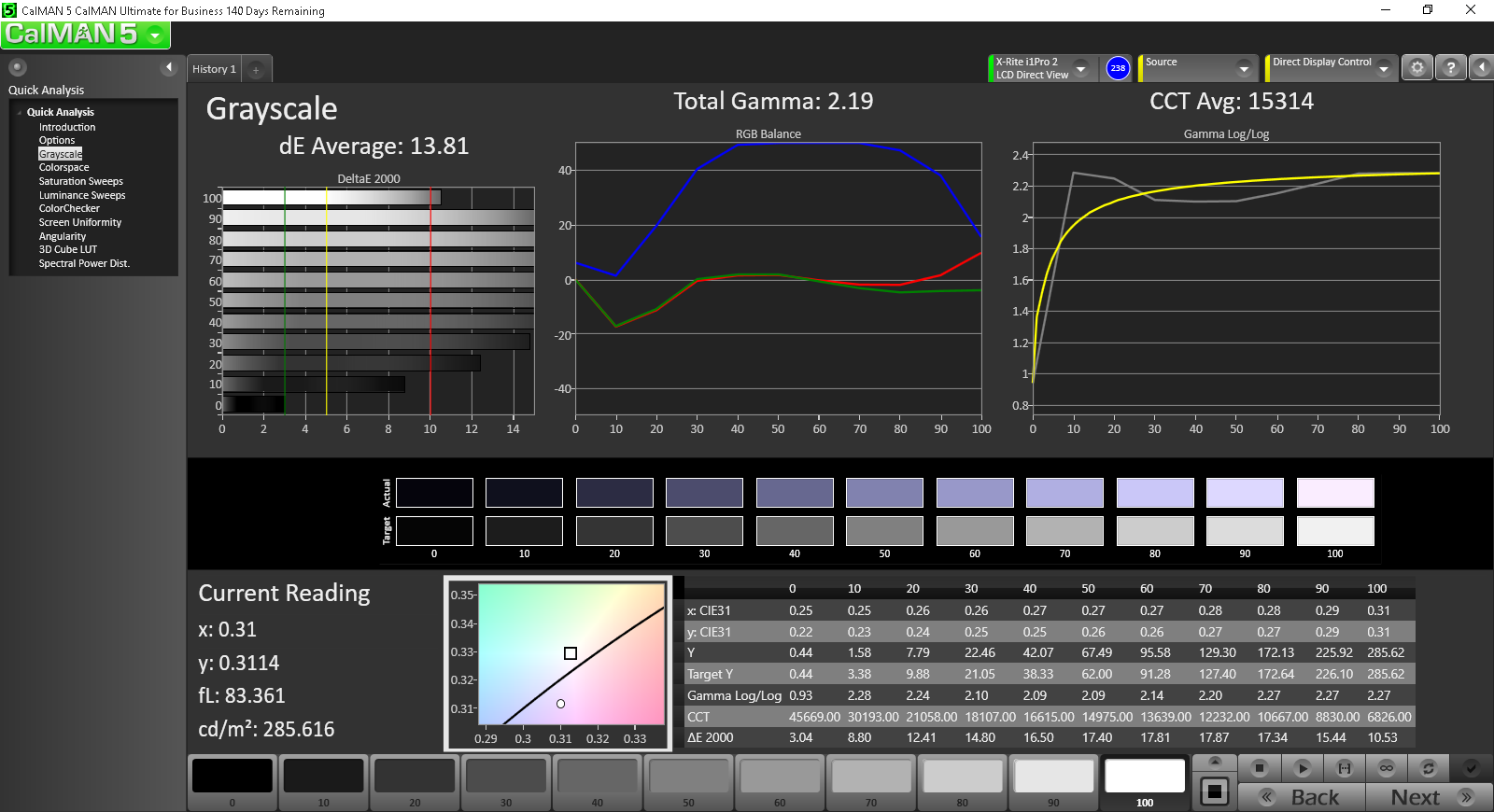 ΔE Greyscale Calman: 13.81 | ∀{0.09-98 Ø5}