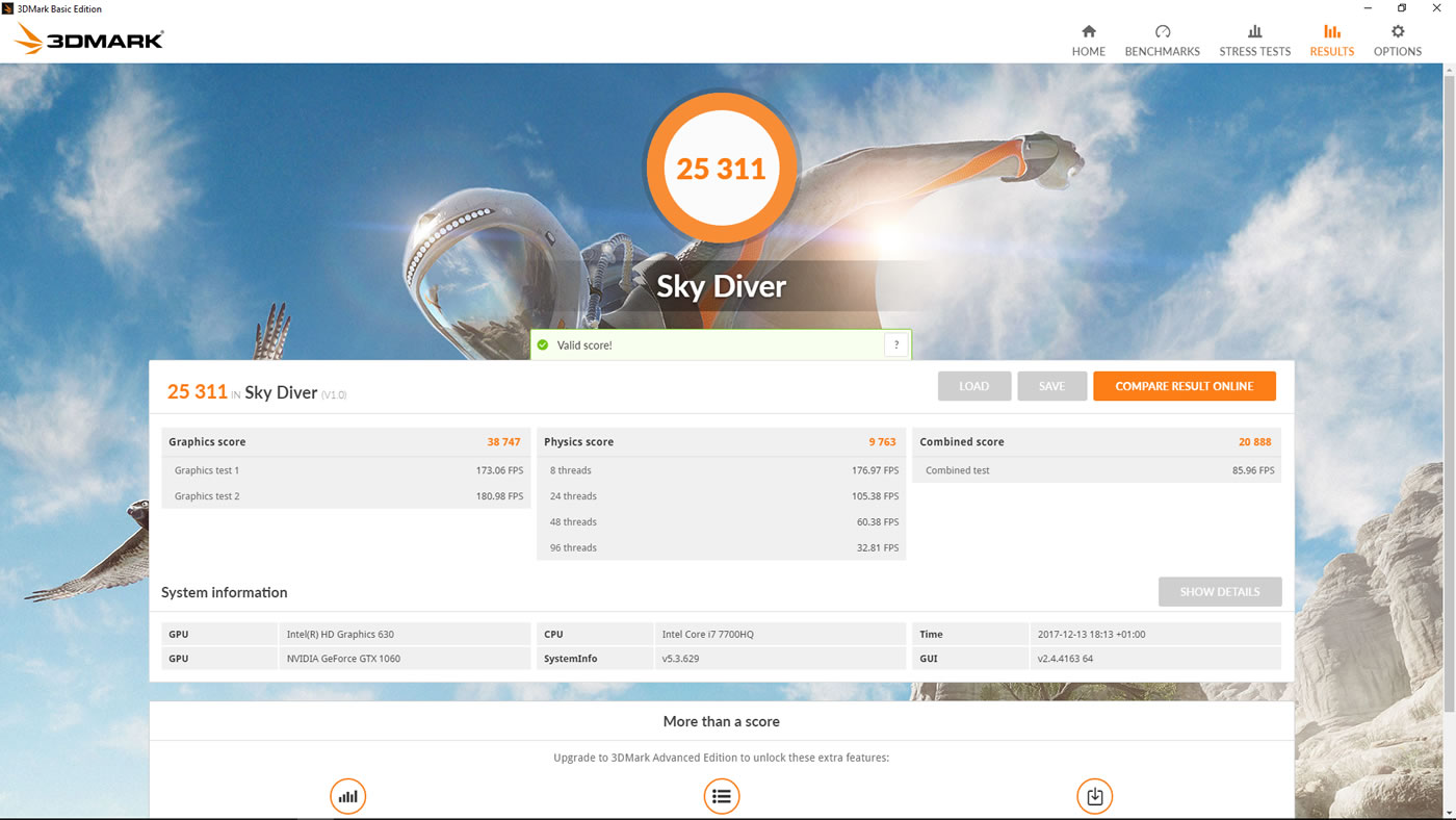 W testach wydajności 3DMark Fire Strike model MSI GP72MVR uzyskał 9949 pkt. w klasyfikacji ogólnej i 11780 pkt. w ocenie wydajności graficznej. Wyniki te są lepsze od średnich osiąganych przez laptopy z kartą GTX 1060 (odpowiednio 9646 i 11440 pkt.).