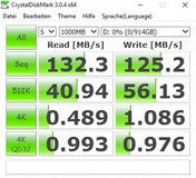 Omawiany laptop był wyposażony w dwa dyski SSD formatu M.2 o pojemności 256 GB, połączone w RAID 0. Dyski te wykorzystują interfejs PCIe. W teście AS SSD odczyt sekwencyjny przekroczył 2800 MB/s a zapis osiągnął ponad 2100 MB/s. Testy CrystalDiskMark wykazały odczyt sekwencyjny na poziomie niespełna 3300 MB/s i zapis znacznie przekraczający 2500 MB/s. Wyniki testów odczytu i zapisu 4K nie są tak imponujące, ale przedstawiają się całkiem nieźle.
