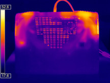 Temperatury obudowy były cały czas umiarkowane. W teście ekstremalnego obciążenia zmierzono maksymalnie niecałe 43°C na spodzie jednostki zasadniczej. W teście bez obciążenia cały korpus był chłodny.