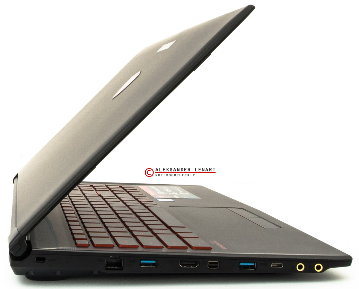 ulokowano pojedyncze przestarzałe USB 2.0, czytnik kart pamięci oraz gniazdo zasilania. Mocniej obciążona jest lewa strona laptopa, na której umieszczono blokadę Kensingtona, LAN, USB 3.0, HDMI, mini DisplayPort, USB 3.0, USB 3.1 typu C oraz dwa gniazda audio. Takie zagęszczenie złączy może być niekiedy problemem, gdy zajdzie potrzeba podłączenia kilku urządzeń peryferyjnych z szerszymi wtyczkami.