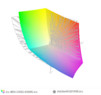Dużo pozytywniej zaprezentowała się paleta barw. Przekracza ona znacząco przestrzeń kolorów sRGB i zbliża się do Adobe RGB. Atutem opisywanego wyświetlacza jest też jego antyodblaskową powłoka. Niestety technologia TN, w której wykonano wyświetlacz, cechuje się wąskimi kątami widzenia.