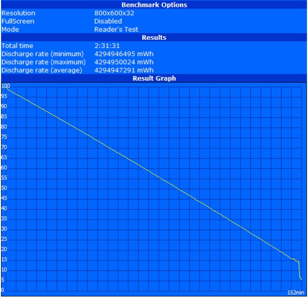 Słabe wyniki przyniosły także testy praktyczne: długość pracy podczas korzystaniu z sieci za pośrednictwem WiFi wyniosła około 2,5 h, a przy odtwarzaniu DVD - godzinę i trzy kwadranse.