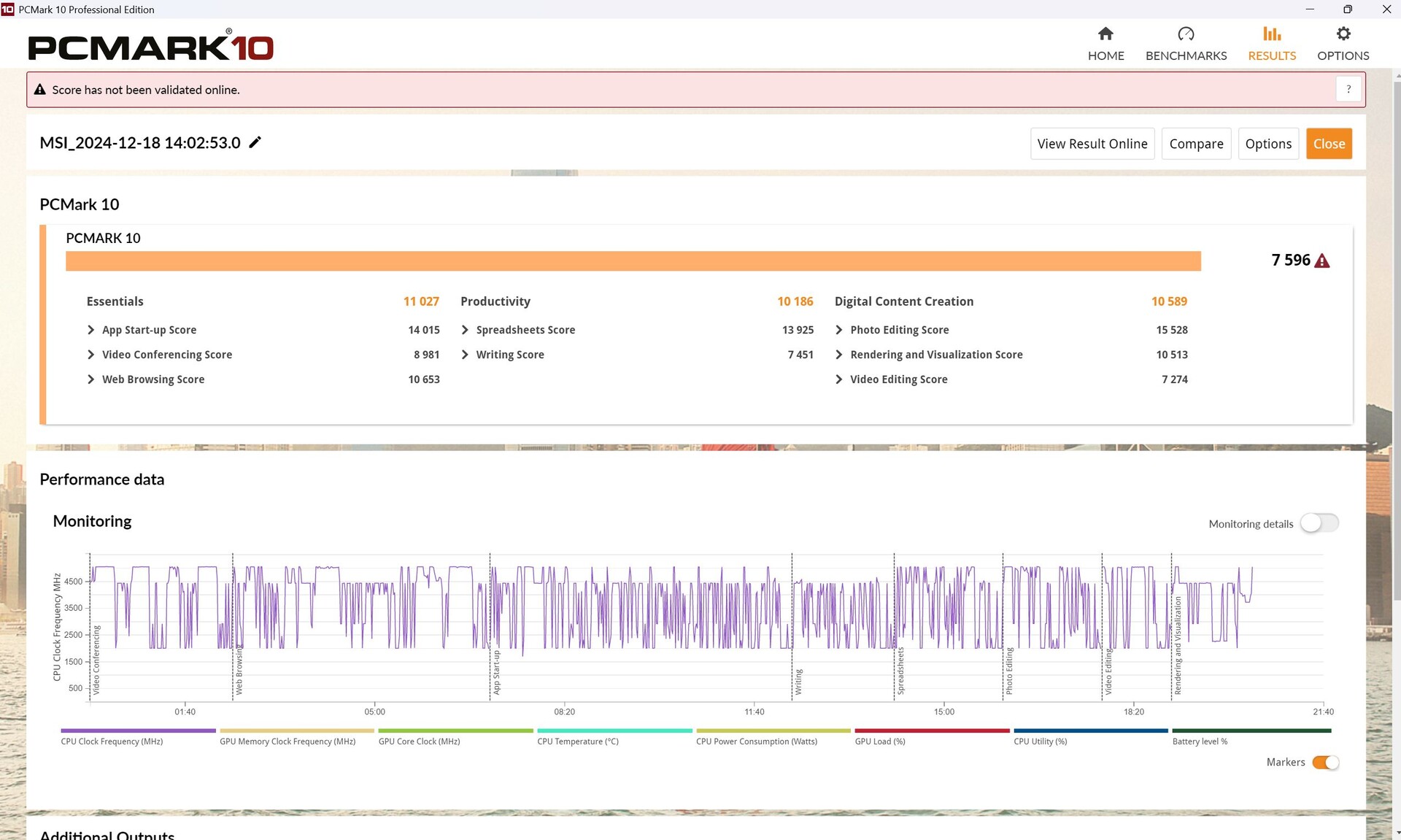 Maksymalny pobór mocy wynoszący około 96 W jest krótkotrwały i nieco niższy niż w przypadku A16 z procesorem Intela. Kompaktowy zasilacz USB-C o mocy 100 W od MSI skutecznie radzi sobie z tymi szczytowymi obciążeniami. AMD Prestige przekracza limit tylko podczas krótkich, intensywnych obciążeń ze względu na wyższe taktowanie Turbo Boost.