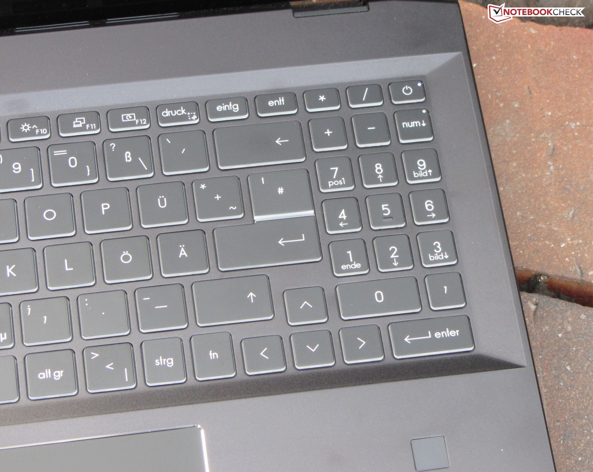Płaskie, gładkie klawisze klawiatury chiclet (trzystopniowe podświetlenie) oferują krótki skok i wyraźny punkt nacisku. Podoba nam się ich opór. Podczas pisania klawiatura ma co najwyżej minimalne podanie, więc nie powodowało to żadnej irytacji. Ogólnie rzecz biorąc, MSI dostarcza tutaj klawiaturę, która nadaje się do codziennych zadań.