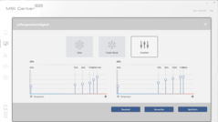 Preinstalowane oprogramowanie MSI Center Pro (patrz zdjęcia) oraz klawisz F7 pozwalają na przełączanie się pomiędzy czterema profilami zasilania (High Performance, Balanced, Silent Mode, Super Battery) laptopa. Kiedy korzysta się z nadrzędnej, opartej na sztucznej inteligencji funkcji"Smart Auto", tak jak w naszym przypadku, MSI Center automatycznie wybiera profil pasujący do danego scenariusza. Profile wpływają tylko na wydajność CPU, a nie na wydajność GPU.