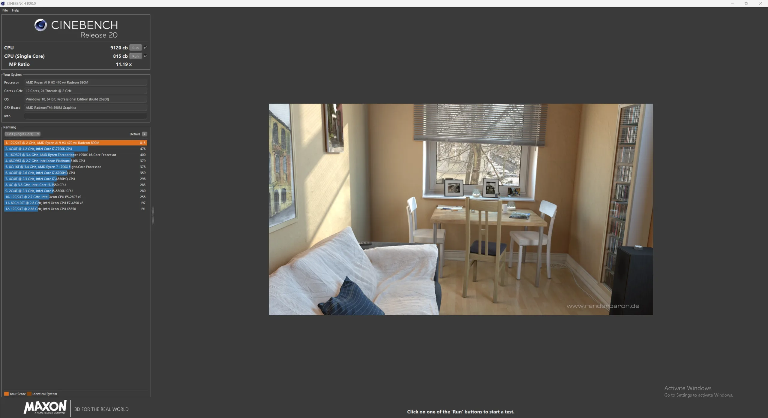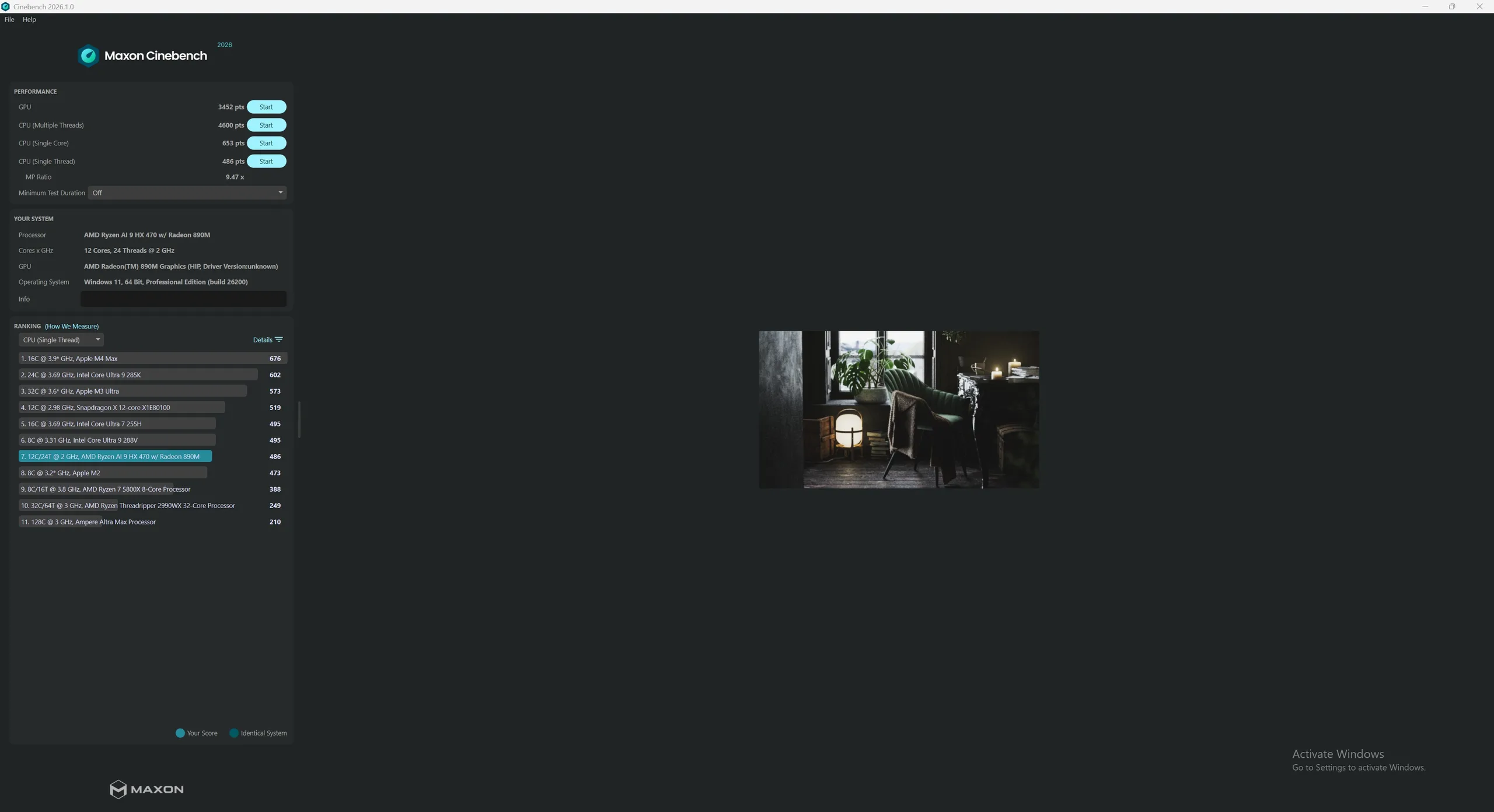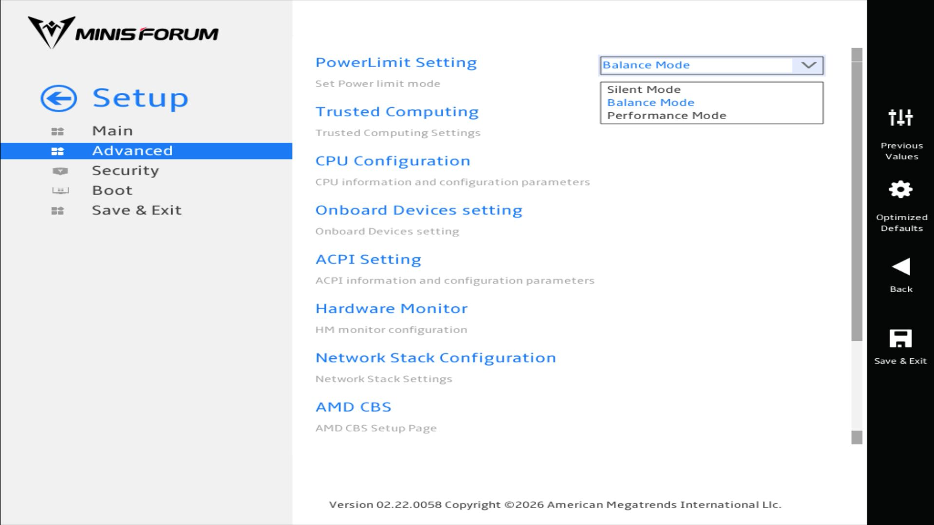 Wszystkie testy porównawcze zostały przeprowadzone w ustawieniach fabrycznych. Minisforum umożliwia dostosowanie profilu wydajności AMD Ryzen AI 9 HX 470 w BIOS-ie, ale testy zostały przeprowadzone w ustawieniach fabrycznych z ustawieniem "Auto".