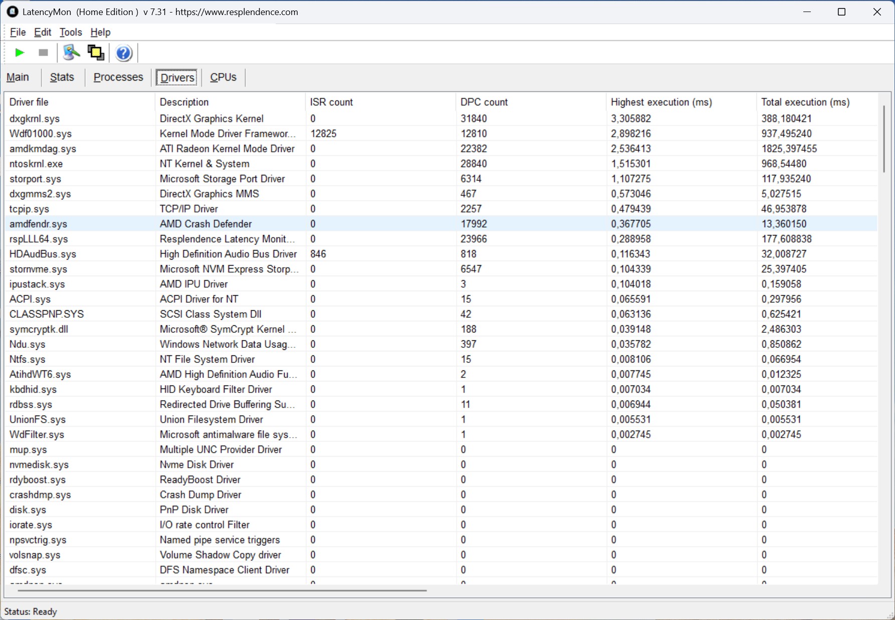 | DPC Latencies / LatencyMon - interrupt to process latency (max), Web, Youtube, Prime95 | |