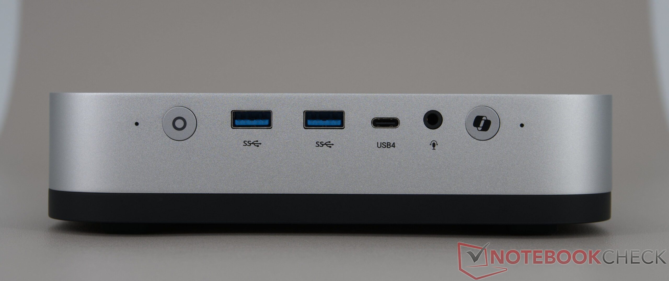 Obudowa i funkcje Minisforum AI X1 Pro z AMD Ryzen AI 9 HX 470 są całkowicie identyczne z Minisforum AI X1 Pro z AMD Ryzen AI 9 HX 370. Jedyne różnice to konfiguracja procesora i pamięci RAM w naszym urządzeniu testowym. Aby uzyskać więcej szczegółów, proszę odnieść się do testu Minisforum AI X1 Pro-HX 370.