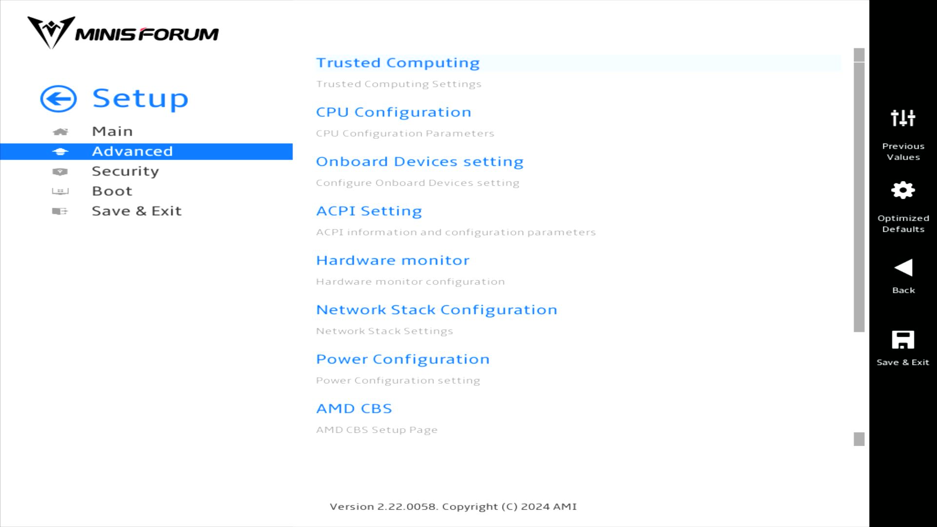 Wszystkie istotne dla oceny testy przeprowadziliśmy w stanie fabrycznym urządzenia, tj. z ustawionym limitem mocy w trybie zrównoważonym. W trybie wydajności Minisforum zapewnia procesorowi nieco więcej mocy, do 70 watów, co można ustawić w BIOS-ie.