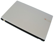 Dięki podobnemu profilowaniu i niemal identycznym zawiasom pokrywa ekranu d przypomina tę znaną z Acera AS7740G. Ma jednak nad nią ogromną przewagę, a mianowicie posiada aksamitną w dotyku, zupełnie odporną na zabrudzenia, matową powierzchnię zewnętrzną, której (w testowanym egzemplarzu) nadano srebrno-szarą barwę (PB stosuje także inne kolory obudów), uzupełnioną popularnym wzorkiem falujących linii. Końcowym elementem wystroju tej strony klapy jest tabliczka z wytłoczonym logo producenta.