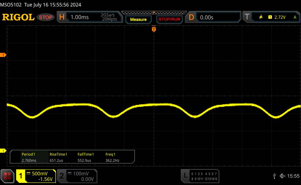 Ze względu na wbudowaną technologię OLED, producent wykorzystuje modulację szerokości impulsu do sterowania jasnością ekranu. Zmierzyliśmy częstotliwość 90 Hz dla migotania ekranu za pomocą oprogramowania Rigol, co jest prawdopodobnie spowodowane BFI (Black Frame Insertion). PWM określony za pomocą oscyloskopu jest równomierny, chociaż amplituda mogłaby być nieco bardziej płaska przy 25 procentach. Samo Realme mówi o bardzo wysokiej częstotliwości (2160 Hz), ale nasz ręczny pomiar potwierdza to tylko w ograniczonym zakresie. W zależności od poziomu jasności, częstotliwość waha się od 735 Hz do 2,083 Hz. Migotanie ma "niską częstotliwość" tuż poniżej poziomu jasności 17 procent.