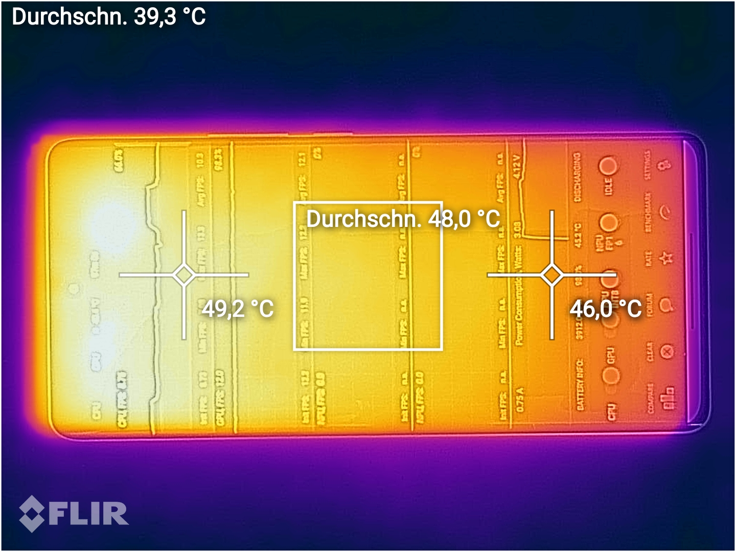 Według producenta, szczególny nacisk położono na "najbardziej zaawansowany system chłodzenia w branży", ale w codziennym użytkowaniu z 9-warstwowej komory próżniowej niewiele zostaje. W naszym scenariuszu obciążenia obudowa nagrzewa się stosunkowo znacznie, osiągając szczytową temperaturę prawie 48 °C (118,4 °F). Rozwój ciepła po godzinnym teście obciążeniowym z benchmarkiem burnout również prowadzi do znacznych spadków wydajności.