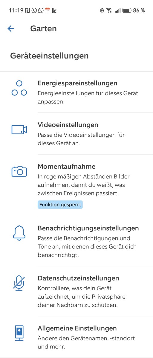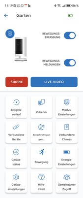 Powiadomienia push na smartfonach lub tabletach docierają do użytkownika w ciągu kilku sekund. Można rozmawiać bezpośrednio przez podgląd na żywo: dwukierunkowy system audio z redukcją szumów umożliwia zrozumiałą komunikację. Zintegrowany mikrofon wyraźnie odbiera głosy, ale goście nie powinni znajdować się zbyt daleko od kamery, w przeciwnym razie trudno będzie ich zrozumieć.