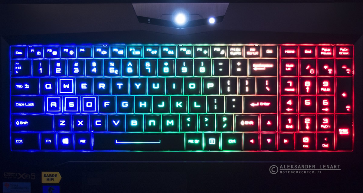Klawiatura, w którą wyekwipowano model Saelic G761D, jest dość dobrze znana z wcześniejszych recenzji. Identyczny model został omówiony m.in. w teście laptopa Saelic Vici G781D. Prezentowane urządzenie cechuje się regulowanym, trzystrefowym podświetleniem. Regulować można nie tylko intensywność (na 4 poziomach), ale i barwę. Płytki klawiszy alfanumerycznych są jakby lekko profilowane (wklęsłe) a ich powierzchnia w większości przypadków ma wielkość 14 x 14 mm. Układ klawiszy jest dość tradycyjny, ale niestety ma wbitą w blok numeryczny prawą strzałkę. Skok klawiszy jest krótki i miękki oraz niezbyt głośny. Podparcie klawiatury zaś jest przeciętne. Największym atutem dla prawdziwych graczy jest zupełny brak blokad w kombinacjach trzech jednocześnie wciskanych klawiszy.