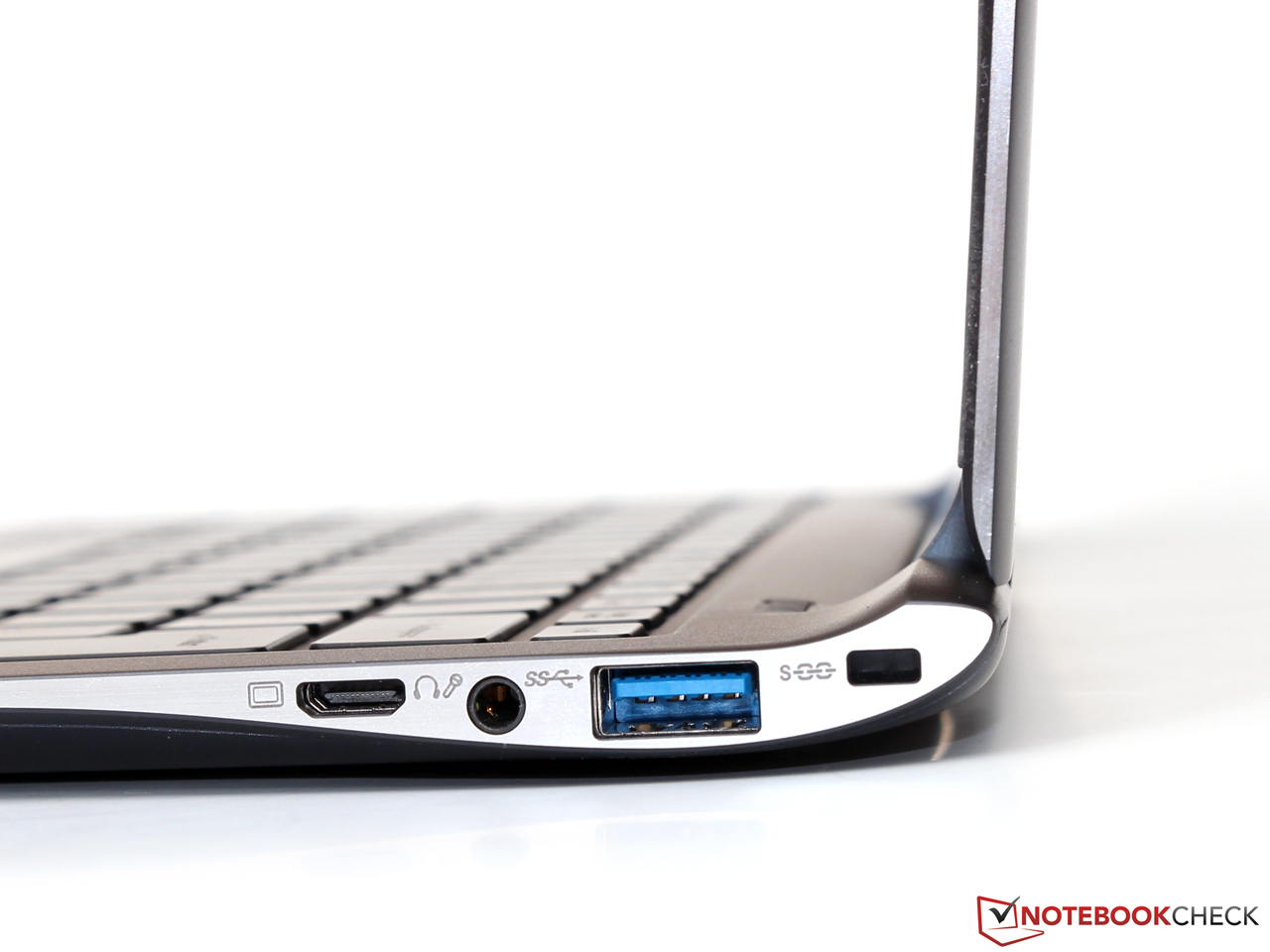 Podobnie jak w wielu innych ultrabookach, gładzik nie posiada oddzielnych przycisków, a ich funkcję przejęła sama płytka dotykowa; poprzez nacisk z jednej lub drugiej strony płytki uzyskuje się funkcję lpm lub ppm. Naciskanie płytki działa niezawodnie, a jej klik jest wyraźny, ale nie zbyt głośny.