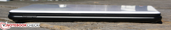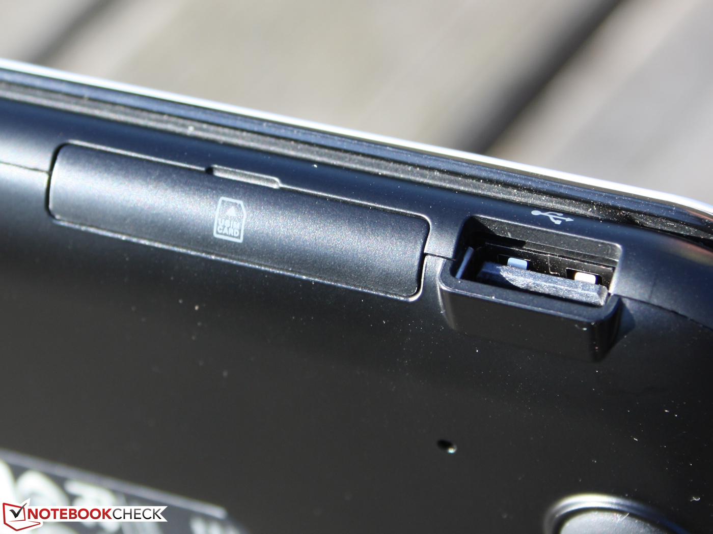 Gniazdo karty SIM oraz porty mini VGA i USB są schowane za gumową klapką. Nie zginie ona, gdyż jest przymocowana do obudowy. Czytnik kart można z początku łatwo przeoczyć, gdyż znajduje się on nisko na przedniej krawędzi Chromebooka. Tkwi w nim plastikowa zaślepka.
