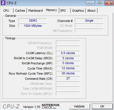 System ma do dyspozycji 1 GB pamięci RAM DDR3 10600S pracującej z prędkością 667 MHz. Jest tylko jedno gniazdo pamięci, więc maksymalnie można zamontować moduł o pojemności 2 GB.