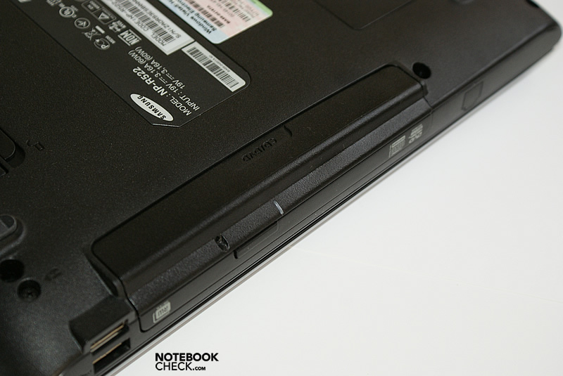 Samsung R522 dysponuje słabym akumulatorem o pojemności 4000 mAh (44 Wh). Dla wersji z podporządkowaną kartą GMA X4500MHD jest on może wystarczający (chociaż można się spierać na ten temat), ale dla modeli z autonomiczną kartą graficzną okazałby się niesatysfakcjonujący (na szczęście producent był na tyle zapobiegliwy, że do mocniejszych modeli przewidział baterię o pojemności 4400 mAh).