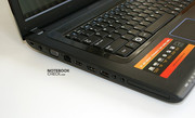 Porty są usytuowane o tyle sensownie, że większość mieści się z lewej strony, a gniazda audio nie trafiły na przednią krawędź obudowy. Pozytywne jest, że wylotowe otwory wentylacyjne zmieściły się z tyłu, tak że nie występują podmuchy w kierunku operujących po bokach komputera dłoni użytkownika. Należy również docenić obecność w tym tanim laptopie portów eSATA i HDMI. Większość konkurentów oferuje je dopiero w nieco droższych modelach.