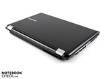 Zawiasy dobrze trzymają ekran i zjawisko kiwania się jest znikome. Maksymalny kąt rozwarcia wynosi około 135 stopni i jest wystarczający do pracy z laptopem trzymanym na kolanach. By otworzyć pokrywę, trzeba użyć dwóch rąk.