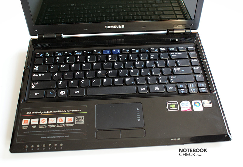 Klawisze są dość twarde i mają krótki, „mięsisty” skok – w tym względzie przypominają niektóre telefony komórkowe. Pisanie nie jest może tak łatwe i przyjemne jak w niektórych konkurencyjnych konstrukcjach, ale jednemu z nas klawiatura Samsunga tak przypadła do gustu, że stwierdził, iż koniecznie musi mieć właśnie taką w kolejnym komputerze. Nie jest więc tak, że tej klawiatury nie da się lubić.