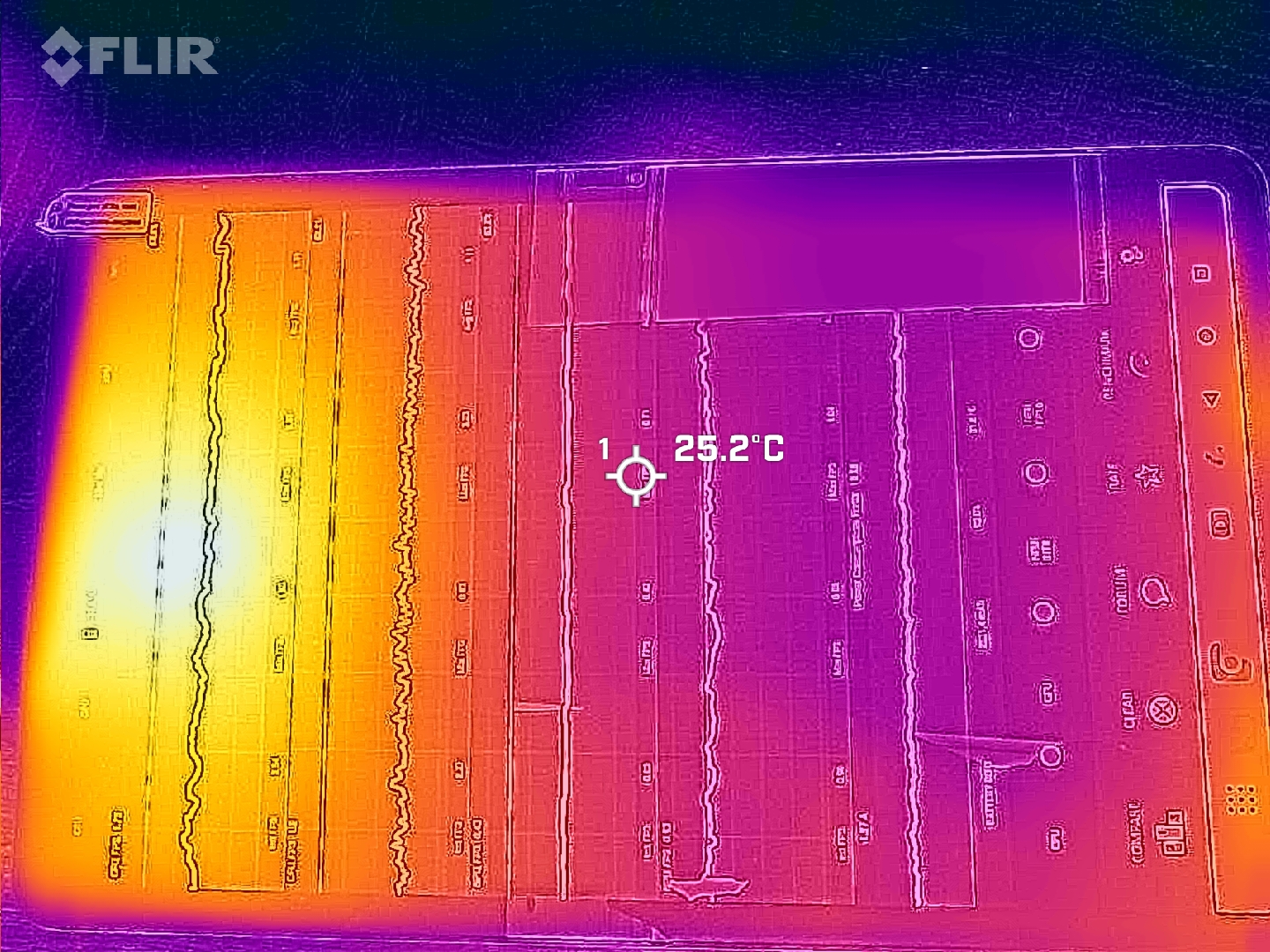 Wydzielanie ciepła pozostaje dla tabletu Teclast pojęciem obcym. Zarówno podczas pracy na biegu jałowym, jak i pod obciążeniem, temperatury powierzchni obudowy nie są warte wzmianki. Ponadto oceniamy stałość temperatury obudowy Helio G88 za pomocą testu warunków skrajnych 3DMark.