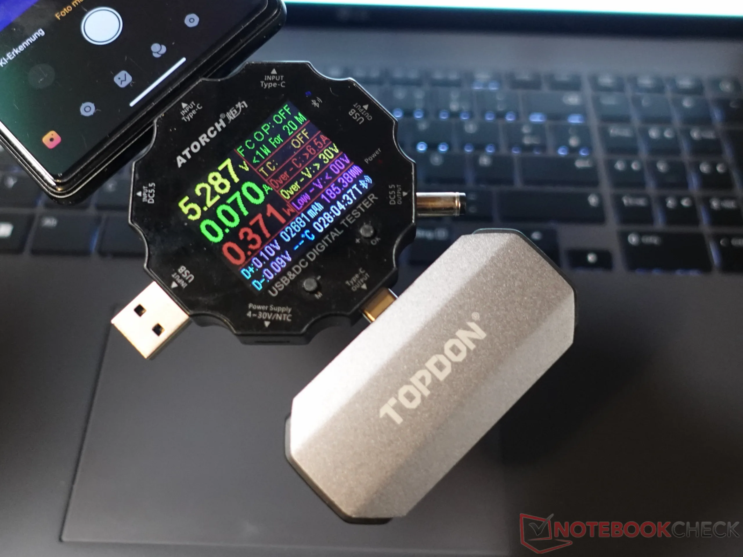 TC002C Duo pobiera energię bezpośrednio z baterii smartfona lub laptopa, bez wewnętrznego źródła zasilania. Podczas pracy zmierzyliśmy pobór mocy na poziomie zaledwie 0,37 W - co oznacza, że typowy smartfon może z łatwością zapewnić zasilanie na kilka godzin użytkowania.