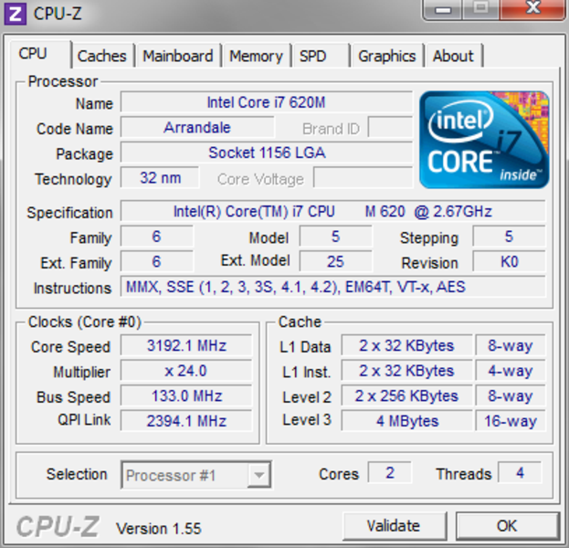 Core i7-620M cechuje się zatem identycznymi częstotliwościami taktowania co Core i5-580M, z tym że posiada 4 a nie 3 MB pamięci Smart Cache.